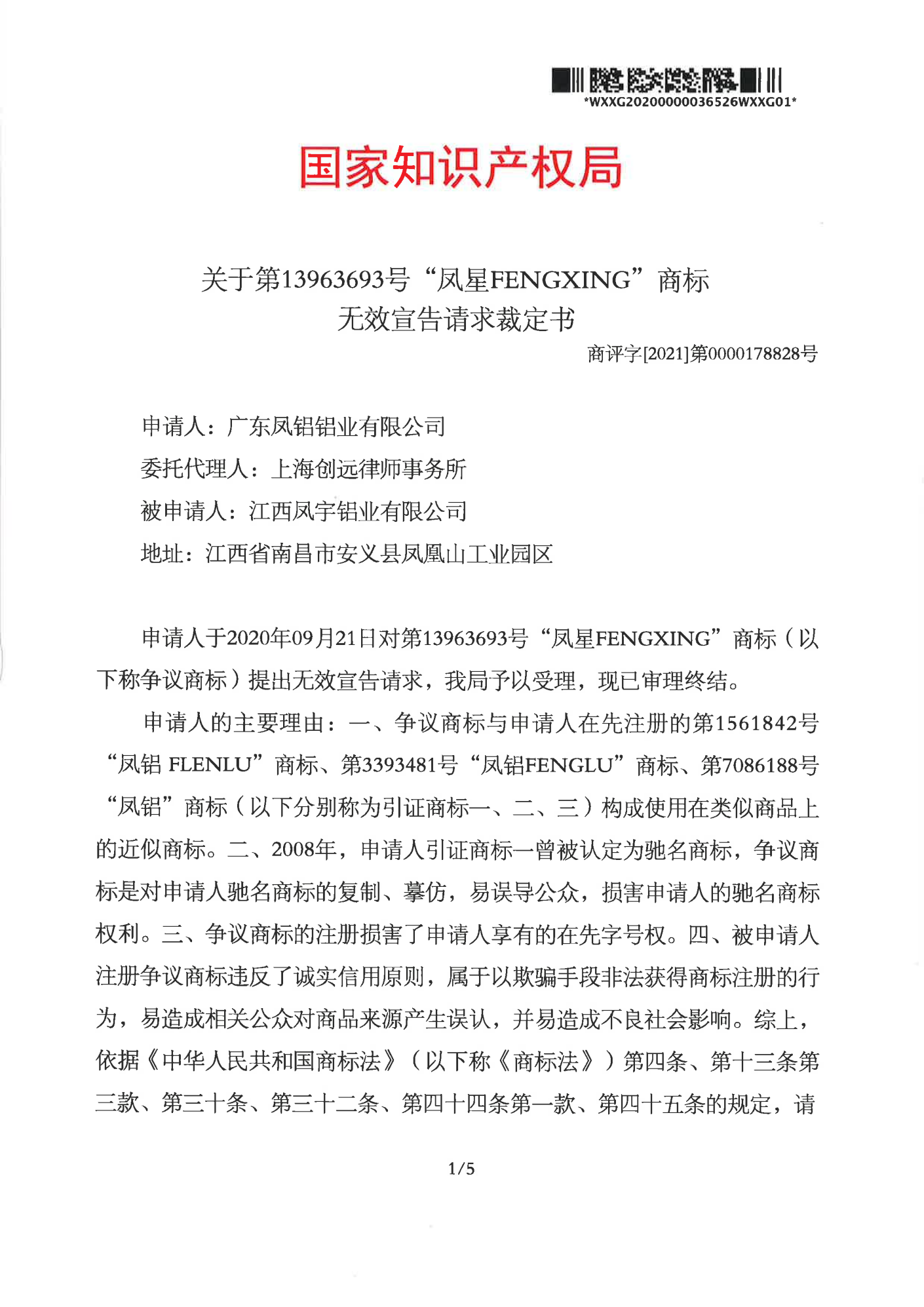 广东辉知队 | 国家知识产权局:“凤星”商标无效