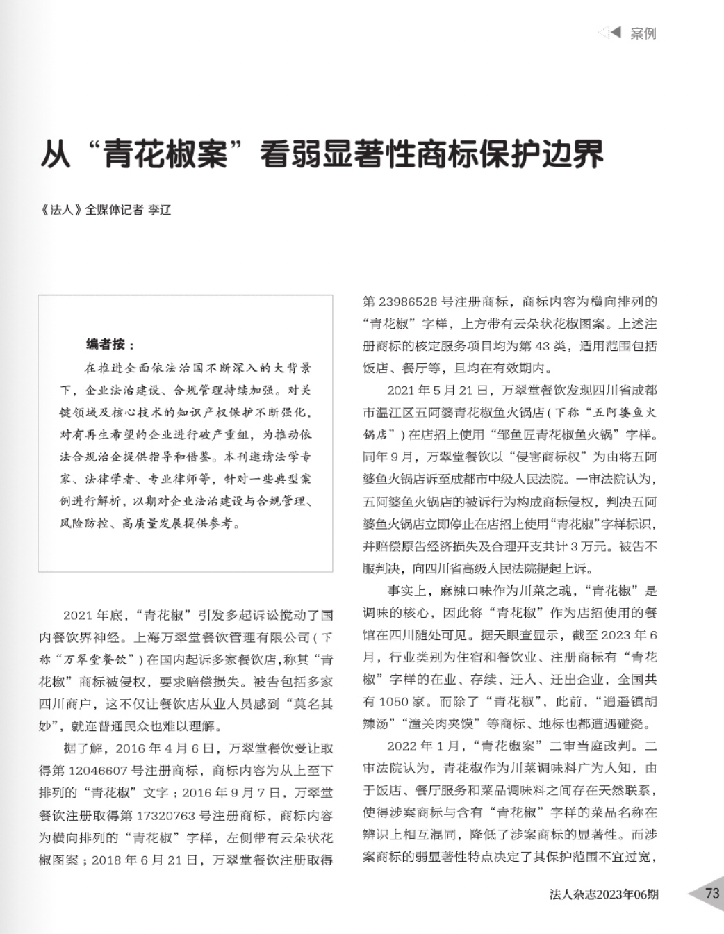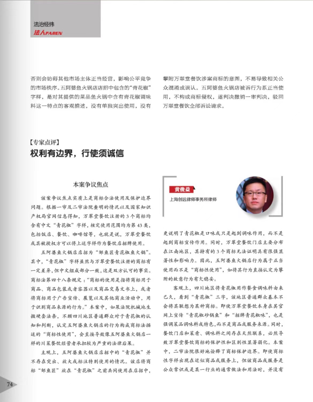 广东辉知简讯 | 辉知队黄俊益律师应“法治日报”旗下杂志邀请,就“青花椒”案发表专家点评